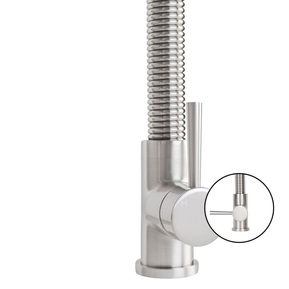ברז מטבח ביתי תעשייתי 2 מצבי זרימה דוחה כתמים גימור נירוסטה גוון אפור כסף
