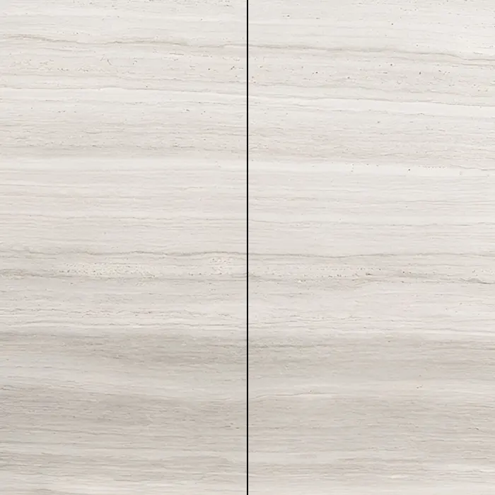 מראה: דמוי טרוורטין טבעי בגוון אפור בהיר עם תנועה ליניארית עדינה ומרקם שכבות אופייני