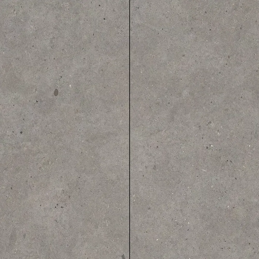 מראה: דמוי אבן טבעית מסוג "Gris Catalan" – אבן גיר במראה עשיר המשלב מינרלים, גרגירים ושאריות מאובנים זעירים. הפורמט הענק חושף טקסטורה אורגנית וגיוון טבעי עמוק המעניקים לחלל מראה יוקרתי, גולמי ומתוחכם המדמה לוח אבן שנחצב בשלמותו.