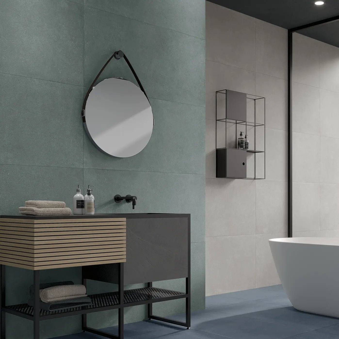 אריח גרניט פורצלן מסדרת Overtone בגוון Moss, המציע פרשנות אדריכלית מרתקת לבטון המודרני על ידי שילוב של טקסטורה צמנטית גולמית עם גוון ירוק עמוק ואורגני. הפורמט של 120×60 מאפשר פריסה מאוזנת ורציפה המדגישה את האופי המיוחד של האריח תוך צמצום קווי החיבור (פוגות). הדגם מספק פתרון עיצובי יוצא דופן המשלב אסתטיקה תעשייתית עם חמימות מהטבע, תוך הבטחת עמידות מקסימלית ואיכות איטלקית מעולה.
